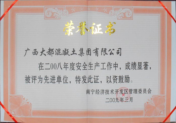 集團(tuán)公司榮獲2008年度經(jīng)開區(qū)、南寧市安全生產(chǎn)工作先進(jìn)單位獎(jiǎng)