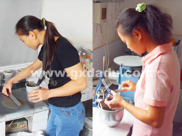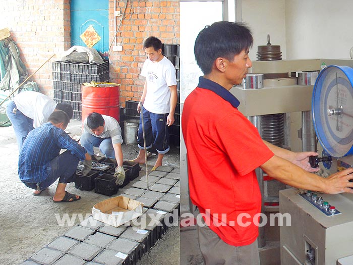 試驗(yàn)組工作人員正在檢測(cè)水泥樣品