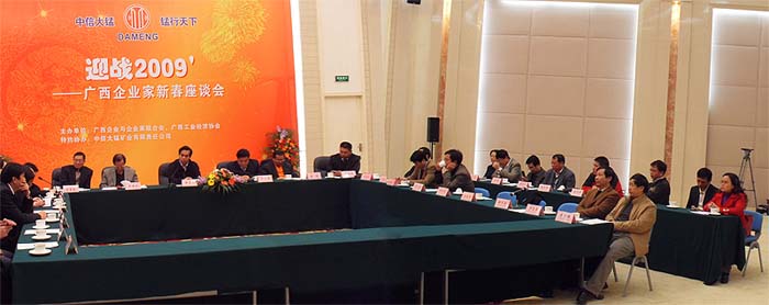 2009年元月7日下午,集團總裁李志雄參加由廣西企業(yè)和企業(yè)家聯(lián)合會、廣西工業(yè)經(jīng)濟協(xié)會在南寧市會展中心舉辦的“迎戰(zhàn)2009`——廣西企業(yè)家新春座談會”。
