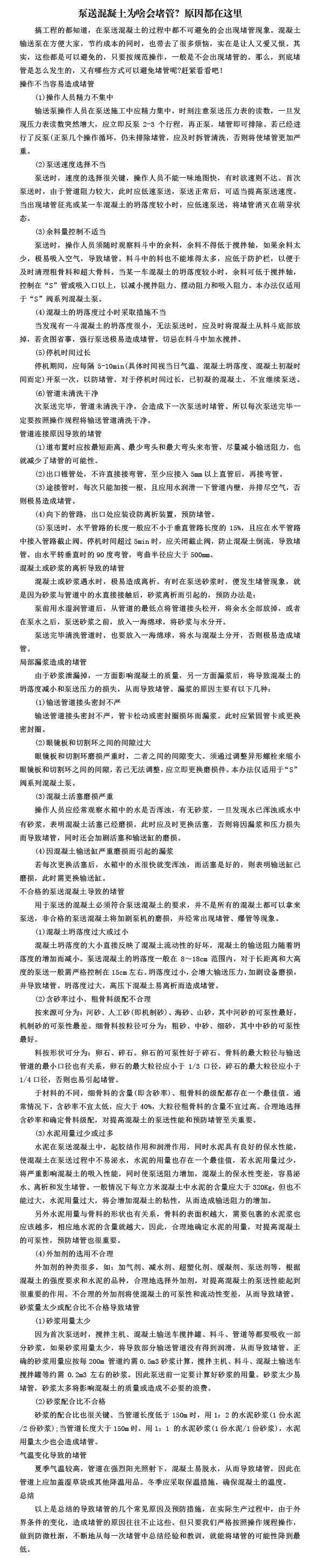 泵送混凝土為啥會(huì)堵管