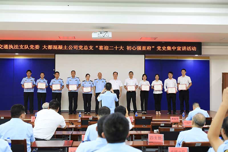 為深入學(xué)習(xí)貫徹習(xí)近平新時(shí)代中國(guó)特色社會(huì)主義思想,推動(dòng)廣大黨員深刻領(lǐng)悟“兩個(gè)確立”、做到“兩個(gè)維護(hù)”,進(jìn)一步鞏固拓展黨史學(xué)習(xí)教育成果,做好迎接黨的二十大召開(kāi)工作,6月30日,集團(tuán)公司黨總支與共建單位市交通執(zhí)法支隊(duì)黨委聯(lián)合開(kāi)展了“喜迎二十大初心強(qiáng)首府”黨史集中宣講活動(dòng)。南寧市委市直屬機(jī)關(guān)工委副書(shū)記藍(lán)迅到會(huì)指導(dǎo)并開(kāi)展黨史集中宣講。
