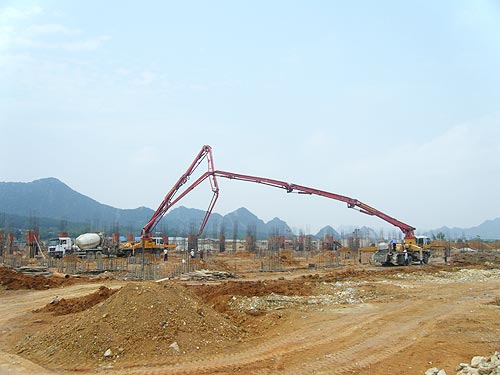 武僑分公司設(shè)備正在麥斯公司工地配送混凝土