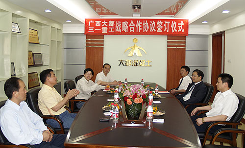 4月16日下午,三一重工周萬(wàn)春副總裁一行到集團(tuán)公司進(jìn)行考察,并與集團(tuán)公司領(lǐng)導(dǎo)進(jìn)行座談。座談會(huì)上,集團(tuán)公司總裁李志雄、周副總裁分別介紹了各自公司的發(fā)展情況及應(yīng)對(duì)金融危機(jī)采取的相應(yīng)措施,并就雙方進(jìn)一步的合作框架達(dá)成共識(shí),簽訂了戰(zhàn)略合作協(xié)議備忘錄。