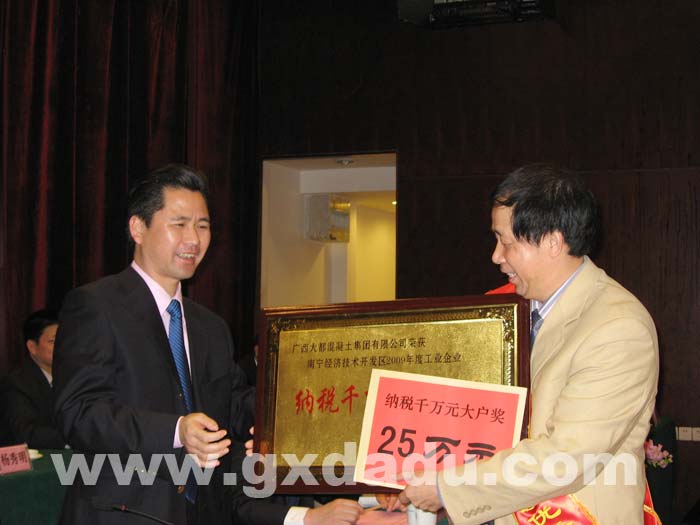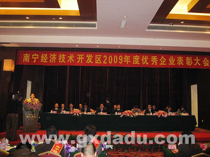 2010年1元30日上午,在南寧經開區(qū)2009年度優(yōu)秀企業(yè)表彰大會暨2010年企業(yè)家新春茶會上,集團公司被授予“2009年度工業(yè)企業(yè)納稅千萬元大戶獎”榮譽稱號。集團公司總經理李志雄代表集團公司上臺領獎并發(fā)表獲獎感言。