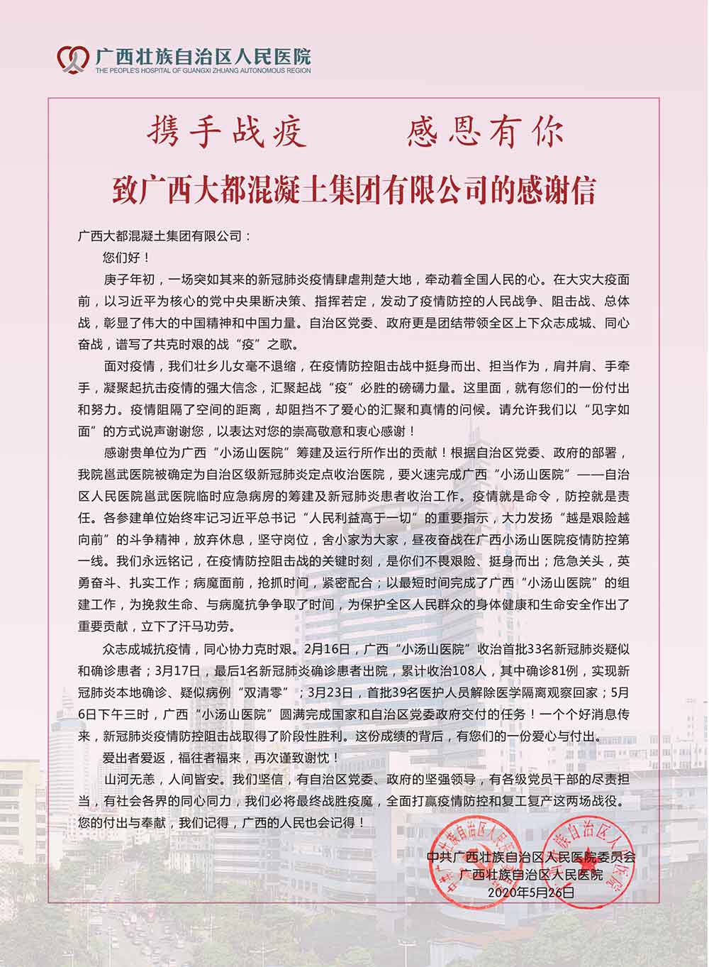 圖片新聞 (集團公司·公司收到廣西壯族自治區(qū)人民醫(yī)院發(fā)來的感謝信)