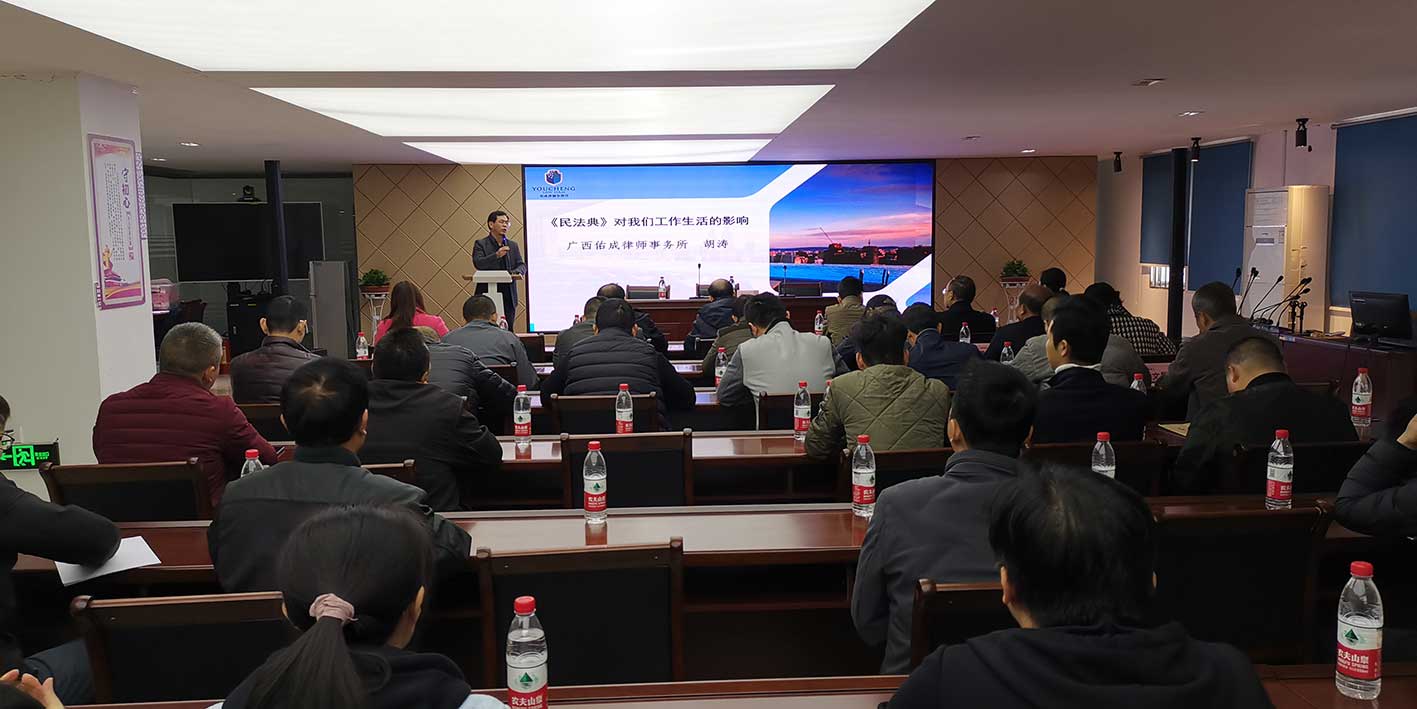 本次培訓內(nèi)容主要分為兩個方面,一是解讀《民法典》對生活工作的影響,二是學習刑法小知識。為本次培訓授課的是柳州大都公司法律顧問廣西佑成律師事務(wù)所副主任胡濤律師、廣西佑成律師事務(wù)所合伙人戶逢春律師,兩位律師講課引經(jīng)據(jù)典,深入淺出,參加培訓的管理人員都認真聽講,細致做筆記,課后紛紛表示獲益匪淺,要結(jié)合公司生產(chǎn)經(jīng)營管理工作實際貫徹落實。