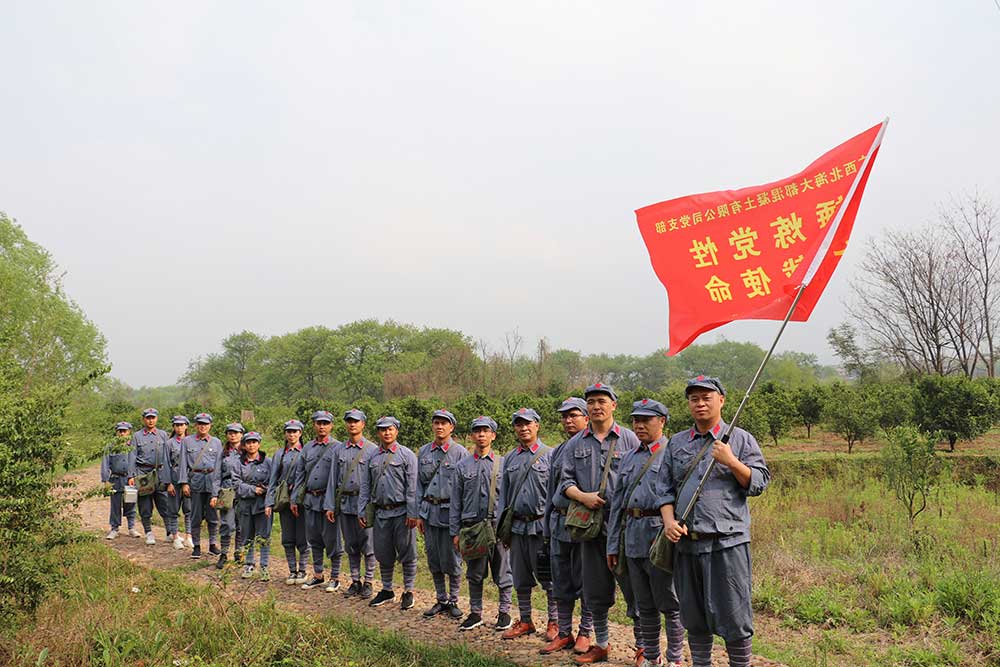 在紅軍長(zhǎng)征突破湘江戰(zhàn)役紀(jì)念碑園,面對(duì)鮮紅的黨旗,黨支部書記蘇一峰帶領(lǐng)全體黨員重溫入黨誓詞,用錚錚誓言表達(dá)對(duì)黨的忠心。
