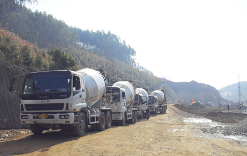 混凝土運(yùn)輸車正在往工地途中