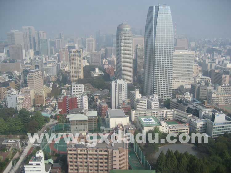 東京鐵塔150米處俯視東京景觀(鐵塔高333米,比法國(guó)巴黎艾菲爾鐵塔高13米)