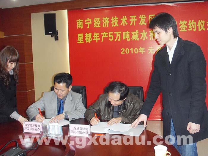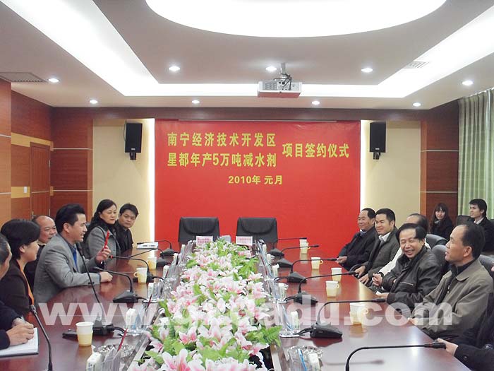 2010年1月7日下午,隨著星都公司年產(chǎn)5萬(wàn)噸減水劑項(xiàng)目簽約儀式在經(jīng)開(kāi)區(qū)管委會(huì)的舉行,這意味著集團(tuán)公司5萬(wàn)減水劑項(xiàng)目正式啟動(dòng)。