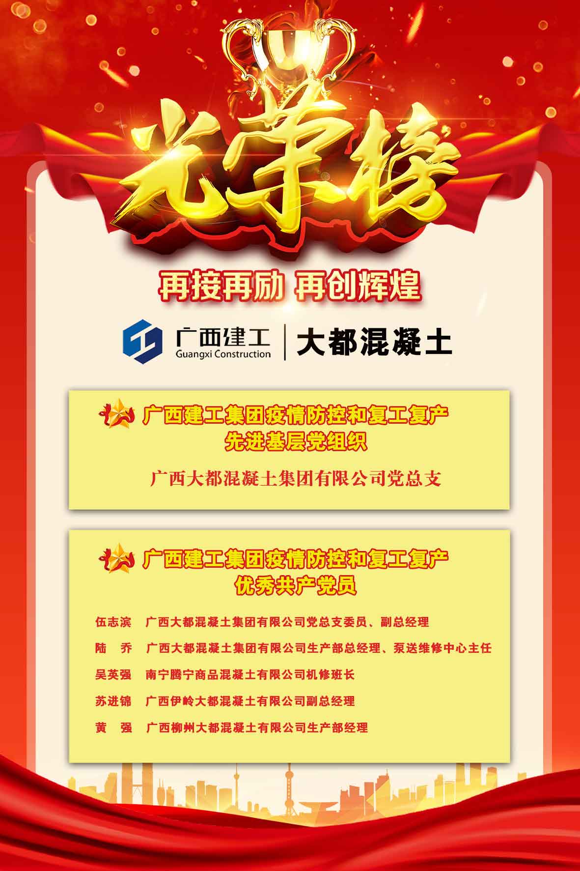 其中,集團(tuán)公司黨總支榮獲廣西建工集團(tuán)疫情防控和復(fù)工復(fù)產(chǎn)先進(jìn)基層黨組織,集團(tuán)公司5名黨員榮獲廣西建工集團(tuán)疫情防控和復(fù)工復(fù)產(chǎn)優(yōu)秀共產(chǎn)黨員稱號(hào)。