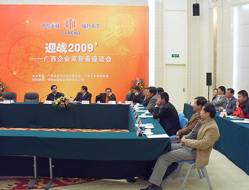 2009年元月7日下午,集團總裁李志雄參加由廣西企業(yè)和企業(yè)家聯(lián)合會、廣西工業(yè)經(jīng)濟協(xié)會在南寧市會展中心舉辦的“迎戰(zhàn)2009`——廣西企業(yè)家新春座談會”。