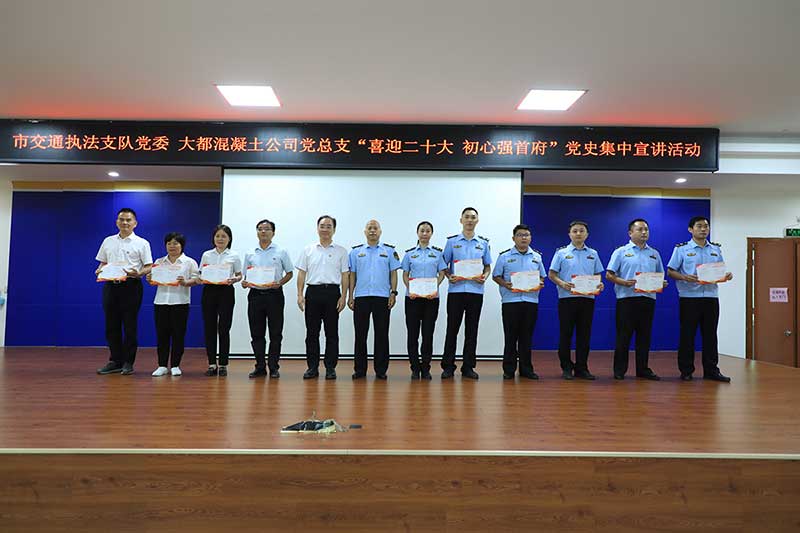 為深入學(xué)習(xí)貫徹習(xí)近平新時(shí)代中國(guó)特色社會(huì)主義思想,推動(dòng)廣大黨員深刻領(lǐng)悟“兩個(gè)確立”、做到“兩個(gè)維護(hù)”,進(jìn)一步鞏固拓展黨史學(xué)習(xí)教育成果,做好迎接黨的二十大召開(kāi)工作,6月30日,集團(tuán)公司黨總支與共建單位市交通執(zhí)法支隊(duì)黨委聯(lián)合開(kāi)展了“喜迎二十大初心強(qiáng)首府”黨史集中宣講活動(dòng)。南寧市委市直屬機(jī)關(guān)工委副書(shū)記藍(lán)迅到會(huì)指導(dǎo)并開(kāi)展黨史集中宣講。
