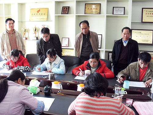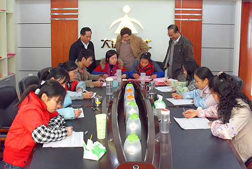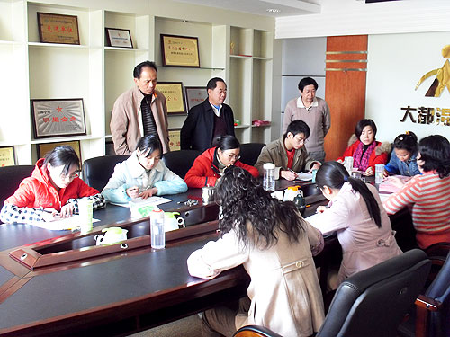集團(tuán)公司領(lǐng)導(dǎo)查看優(yōu)秀員工記票工作進(jìn)行情況