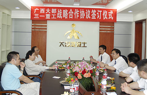 4月16日下午,三一重工周萬(wàn)春副總裁一行到集團(tuán)公司進(jìn)行考察,并與集團(tuán)公司領(lǐng)導(dǎo)進(jìn)行座談。座談會(huì)上,集團(tuán)公司總裁李志雄、周副總裁分別介紹了各自公司的發(fā)展情況及應(yīng)對(duì)金融危機(jī)采取的相應(yīng)措施,并就雙方進(jìn)一步的合作框架達(dá)成共識(shí),簽訂了戰(zhàn)略合作協(xié)議備忘錄。
