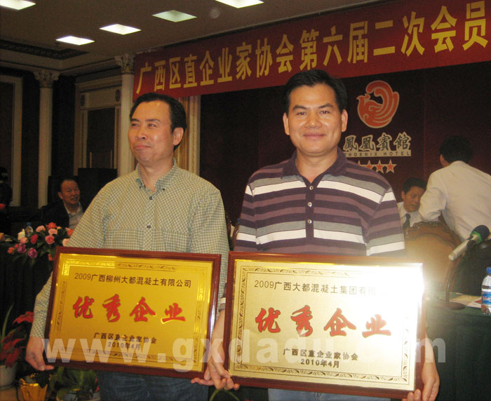 在廣西區(qū)直企業(yè)家協(xié)會(huì)第六屆二次會(huì)員大會(huì)暨表彰會(huì)上,集團(tuán)公司、柳州大都被授予“優(yōu)秀企業(yè)”稱號(hào)。集團(tuán)副總經(jīng)理?xiàng)钪儆、韋炳軍、柳州大都總經(jīng)理周永專榮獲“優(yōu)秀企業(yè)家”稱號(hào)。