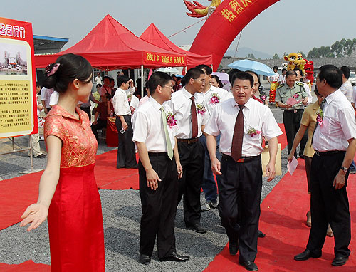 4月22日上午,玉林大都舉行60萬立方混凝土生產線投產儀式。集團公司副總裁楊仲英、業(yè)務部總經理伍志濱、玉林市副市長滿昌學、政協(xié)副主席黃典山、玉州區(qū)書記蔡文、區(qū)長潘艷、人大主席李秀通、政協(xié)主席楊偉廣、軍分區(qū)政委鐘紹達、茂林鎮(zhèn)書記唐澤林等地方政府領導及相關部門人員300多人參加了剪彩儀式。