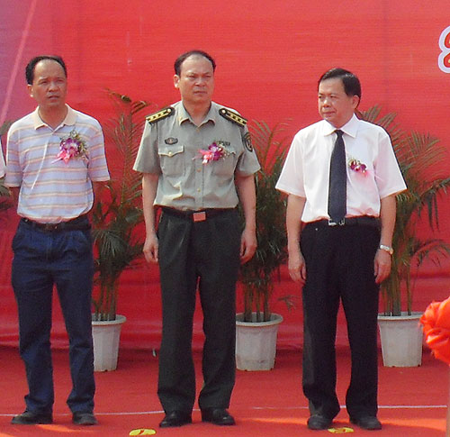 圖片說明:玉州軍區(qū)政委鐘紹達(中)